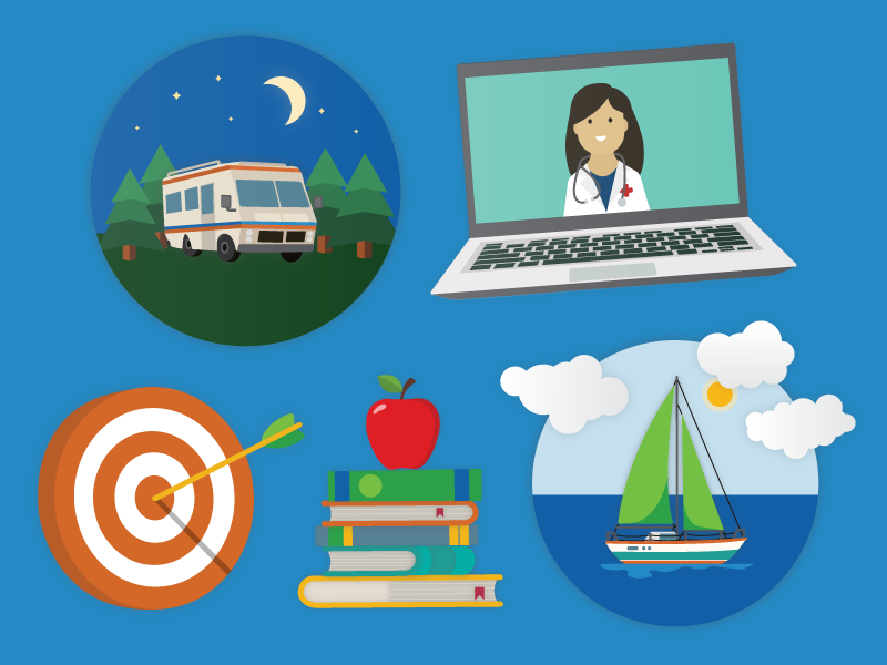 I decided to use illustrations instead of lifestyle images for training content as it allows me to create a consistent visual theme across our eLearning, classroom, and virtual training content. The illustrations follow the goeasy brand colour palette and are designed in Adobe Illustrator and Photoshop.